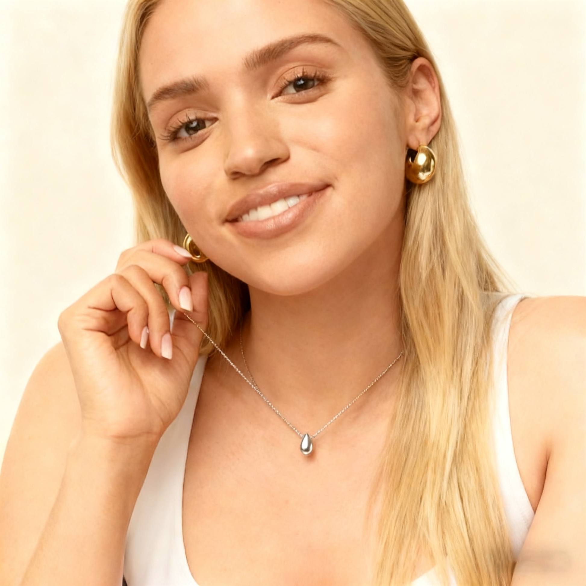 · Our 19" adjustable dainty teardrop necklace is the talk of the town, plated in 14k yellow gold. It's not just a piece of jewelry; it's your outfit's best friend, ready to make you shine with its delicate, teardrop pendant. Plus, with a comfy slider chain and a trusty lobster clasp, it's as functional as it is fabulous and trendy!