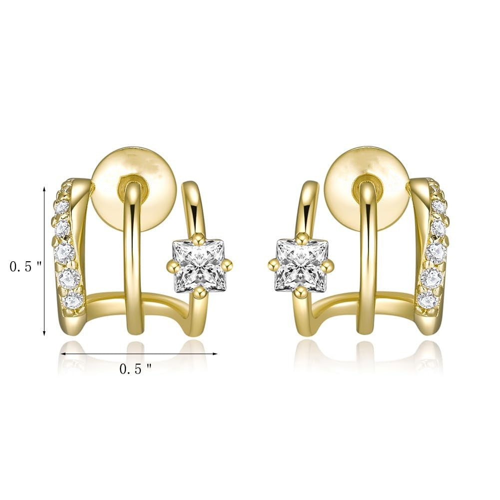 14K Gold Plated Triple Huggie Illusion Stud Earrings | Double Huggie Hoop Earrings for One Hole | Gold Hoop Earrings for Women | Drop earrings